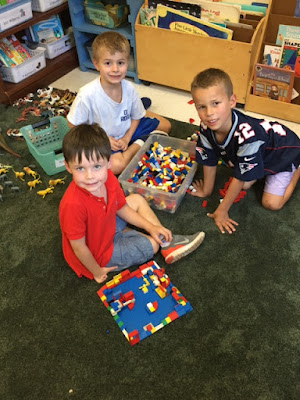 We've been exploring the tools that we'll use in our math lessons: connecting cubes, geoblocks, color tiles and pattern blocks. We're learning how to share and help one another. Teamwork and partner work is a big part of kindergarten, and we're really working on establishing a foundation of cooperation for a great year.